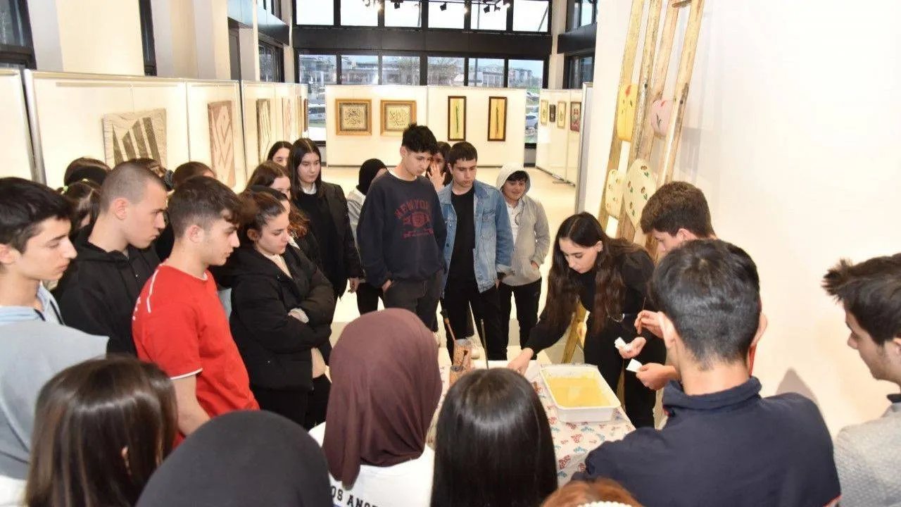 Sergiyi gezen öğrenciler ebru sanatına hayran kaldı