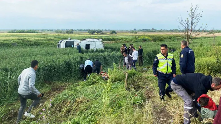 Edinilen bilgiye göre; Bursa-Balıkesir karayolu üzerinden Karacabey ilçesine doğru seyreden Yusuf Ergüneş idaresindeki 16 S 8627 plakalı işçi servisinin Çingençeşme Mevkisi’nde lastiği patladı. Direksiyon hakimiyetini kaybeden servis aracı taklalar atarak yol kenarındaki buğday tarlasına devrildi.