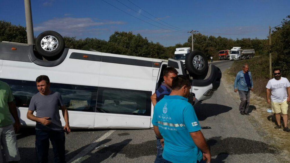 Silivri Sinekli yolu üzerinde meydana gelen kazada takla atan minibüs içerisinde bulunan 11 kişi yaralandı.