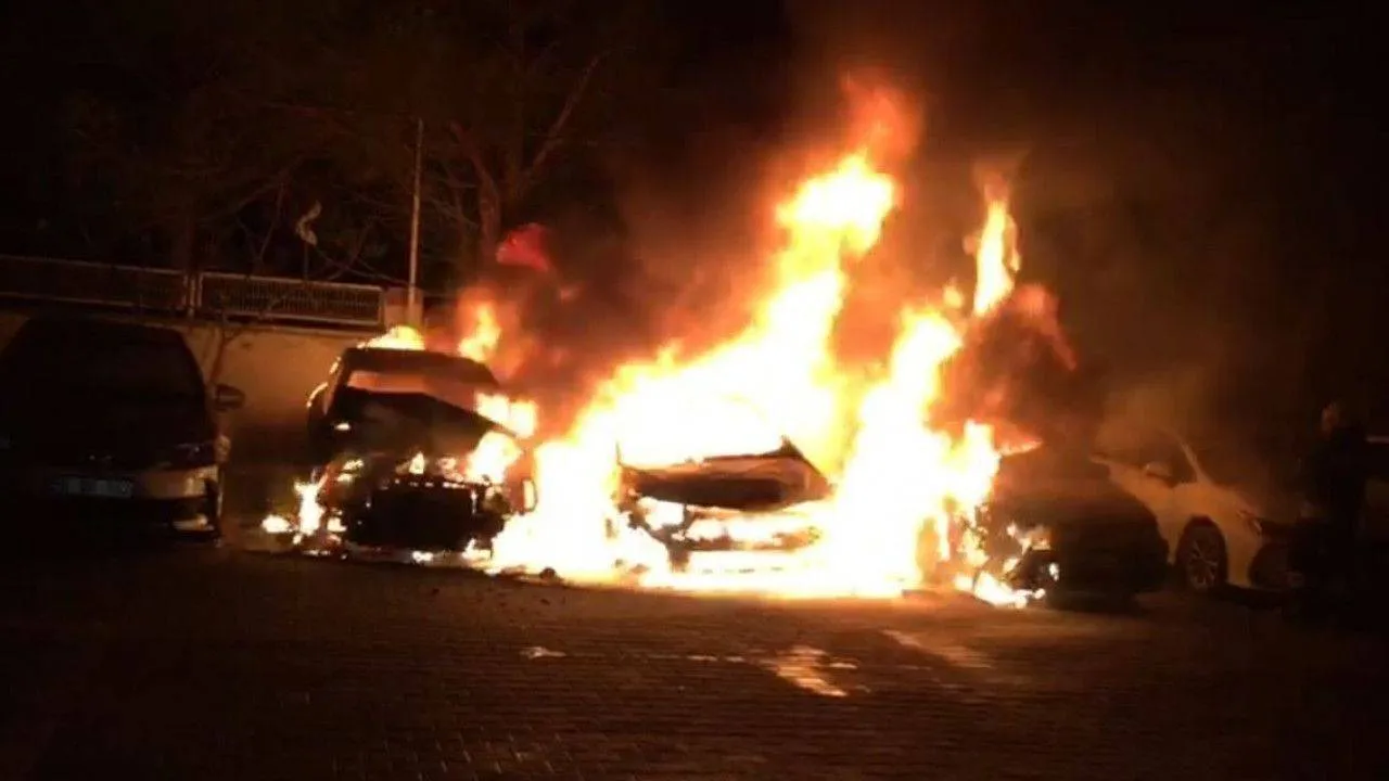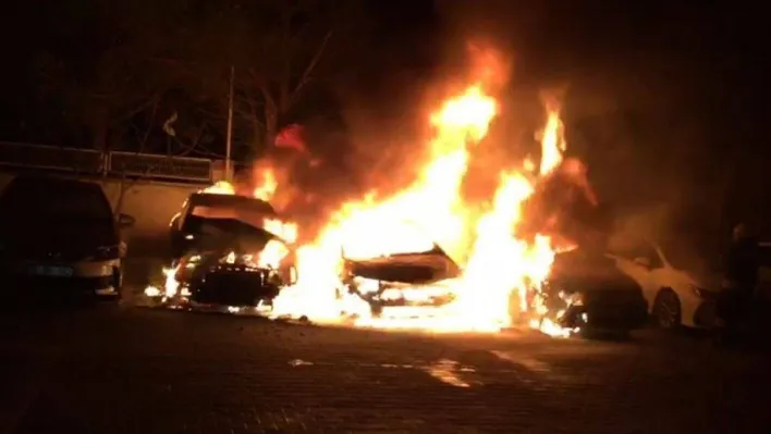 Servis otoparkında arızalı 5 araç alev alev yandı