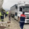 Seyir halindeki tırın açılan dorsesi PTS'ye çarptı