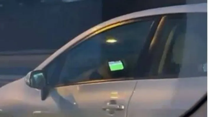 Seyir halindeyken maç izleyen sorumsuz sürücü trafiği tehlikeye soktu