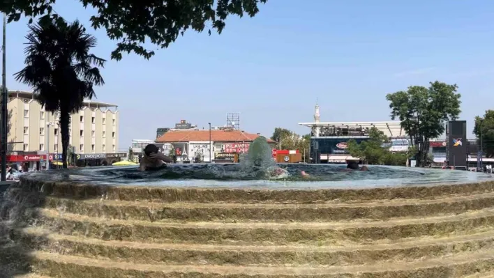 Bursa'da sıcak havaların etkisiyle bunalan çocuklar süs havuzuna girdiler. Elektrik akımının olduğu suda yüzen çocukların tehlikeli oyunu ise kameralara yansıdı.