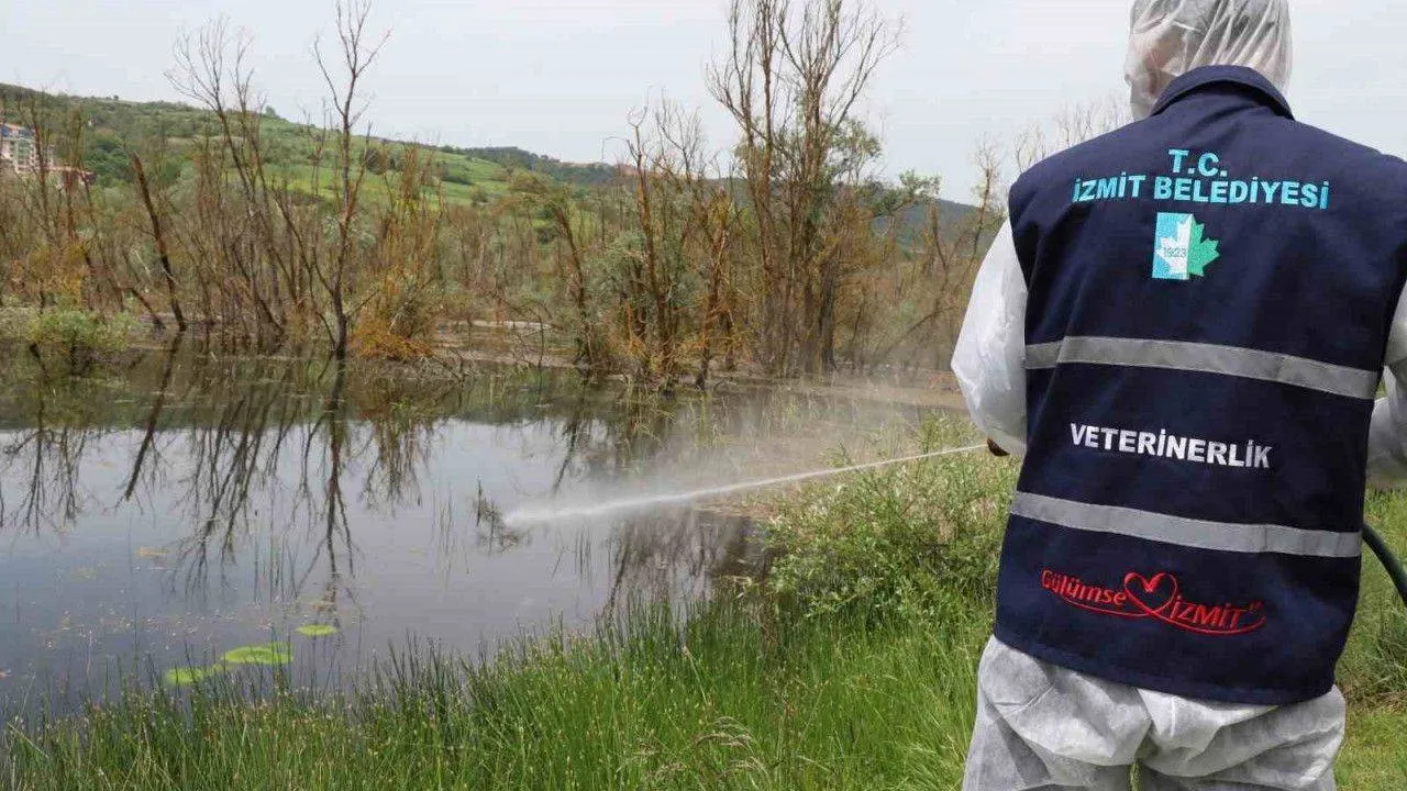 İzmit Belediyesi Veteriner İşleri Müdürlüğü, hava sıcaklıklarının artmasıyla birlikte kent genelinde sivrisinek, sinek ve haşere ile mücadele çalışmalarına hız verdi. Ekipler, belirlenen program dahilinde durgun su birikintileri, dereler, kanallar, rögarlar ve mazgallar gibi larvaların yuvalanabileceği alanlarda ilaçlama çalışmaları gerçekleştiriyor. Çalışmalarla ilgili bilgi veren İzmit Belediyesi Veteriner İşleri Müdürü Dr. Mehmet Çetinkaya, "Ekiplerimiz, vatandaşlarımızın yaz aylarında büyük rahatsızlık duyduğu sivrisinek, sinek ve haşere oluşumunun önüne geçilmesi için erken dönem larva mücadelesini yürütüyor. İlçe genelinde su birikintileri ve bataklık alanlarda yürütülen larva mücadelesinde ergin aşamaya gelmeden larvaları üreme alanlarında yok etmeye yönelik çalışmaları etkin bir biçimde sürdüren ilaçlama ekiplerimiz, sulak alanlar başta olmak üzere, çöp konteynerleri, kanallar, fosseptik ve gübrelik alanlarda ilaçlama yapıyor. Haşerelerin üreme kaynağı olan sulak yerlerdeki karasinek ve sivrisinek larvalarına karşı ilaçlama çalışmaları da sürüyor. Larva ile mücadelemiz yaz boyunca devam edecek" dedi.