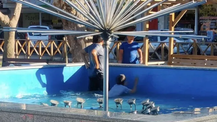 Tekirdağ'ın Muratlı ilçesinde sıcaktan bunalan bazı çocuklar, kendilerini yakınlarındaki süs havuzuna atarak muhtemel riskleri göz ardı edip doyasıya eğlendi.