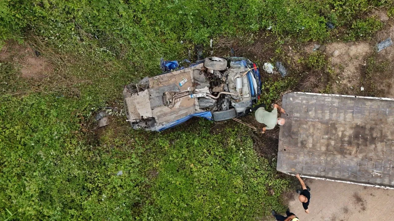 Şile Otoyolu’nda sabah saatlerinde meydana gelen kazada, aşırı hız nedeniyle kontrolden çıkan otomobilin ormanlık alana uçması sonucunda Yelda Karaduman (40) hayatını kaybetmişti. Kaza sonrası jandarma ekiplerinin olay yerindeki incelemeleri tamamlamasının ardından, hurdaya dönen araç, çekiciye yüklenerek otoparka götürüldü. O anlar havadan görüntülendi.