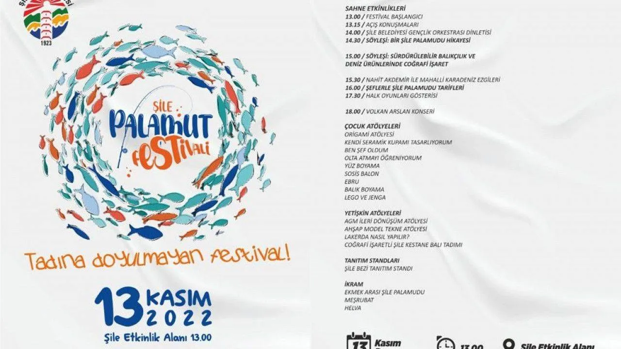 Şile Belediyesi tarafından bu yıl ilk düzenlenecek olan 1. Şile Palamut Festivali 13 Kasım tarihinde birbirinden güzel etkinliklerle başlıyor. Balıkçılık kültürüne, balığın faydalarına ve palamut balığının verimli adresi olan Şile’deki önemine saygı duruşu olacak festivalde söyleşiler, dans gösterileri, müzik dinletileri ve çok sayıda atölye yer alacak.