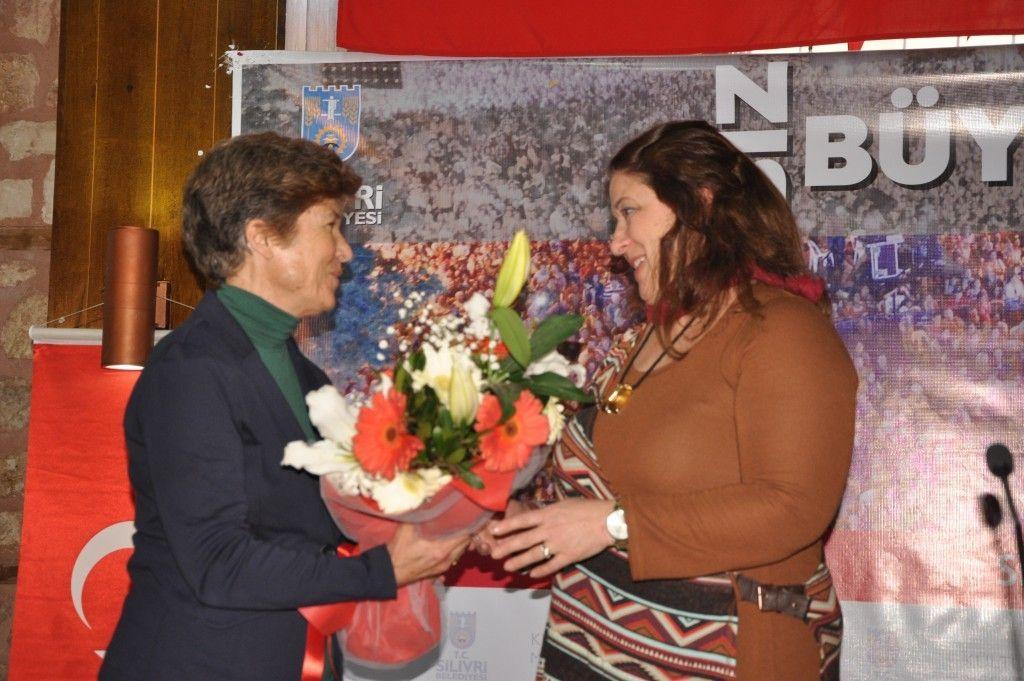 Seminerin sonunda Silivri Kent Konseyi Başkanı Dilruba Önal, Özden ve Önal’a katılımlarından dolayı teşekkür ederek çiçek takdim etti.