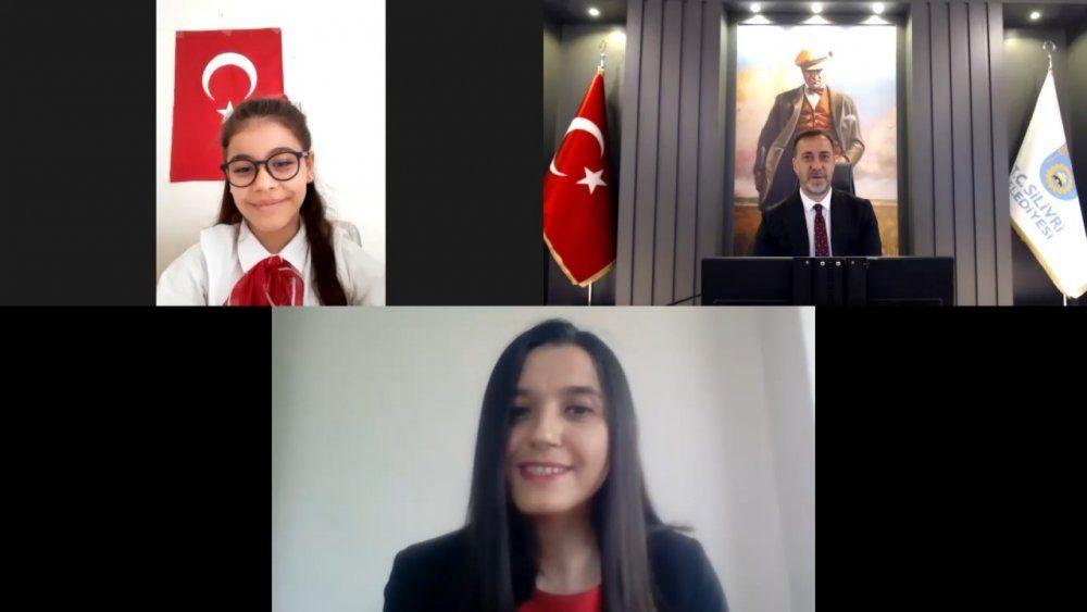 Silivri Belediye Başkanı Volkan Yılmaz, Ulusal Egemenlik ve Çocuk Bayramı nedeniyle, Piri Mehmet Paşa İlkokulu 4’üncü sınıf öğrencisi Esila Çakı’ya koltuğunu devretti. Öğretmen Şule Batak’ın moderasyonuyla video konferans yöntemiyle gerçekleşen görüşmede; Başkan Volkan Yılmaz, Esila’ya belediye başkanı olarak yapmak istediği ilk üç icraatının ne olduğunu sordu. Esila ise; hayvanlar için mama noktalarının sayılarını artırmak, önemli günler için şenlikler düzenlemek ve engelliler için hem yeni okullar açmak hem de onların hayatlarını kolaylaştırmak olacağını söyledi.