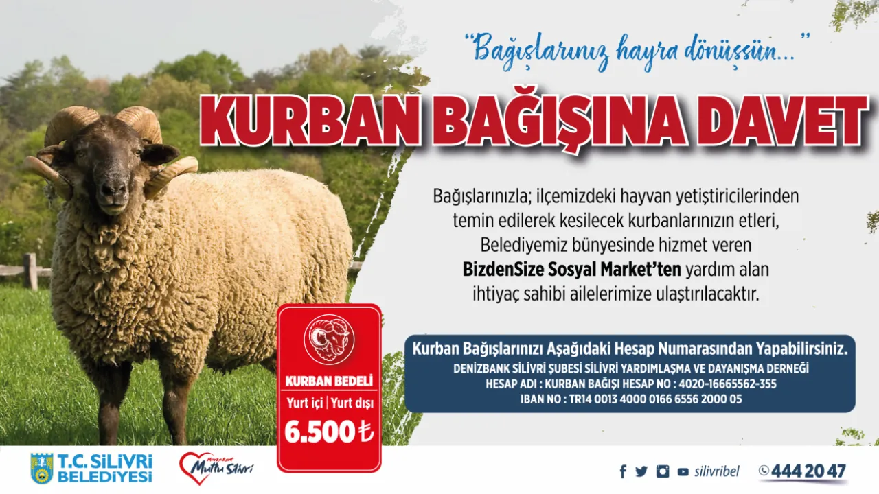 Kurban Bağışı İçin Hesap Bilgileri: Denizbank Silivri Şubesi Silivri Yardımlaşma ve Dayanışma Derneği