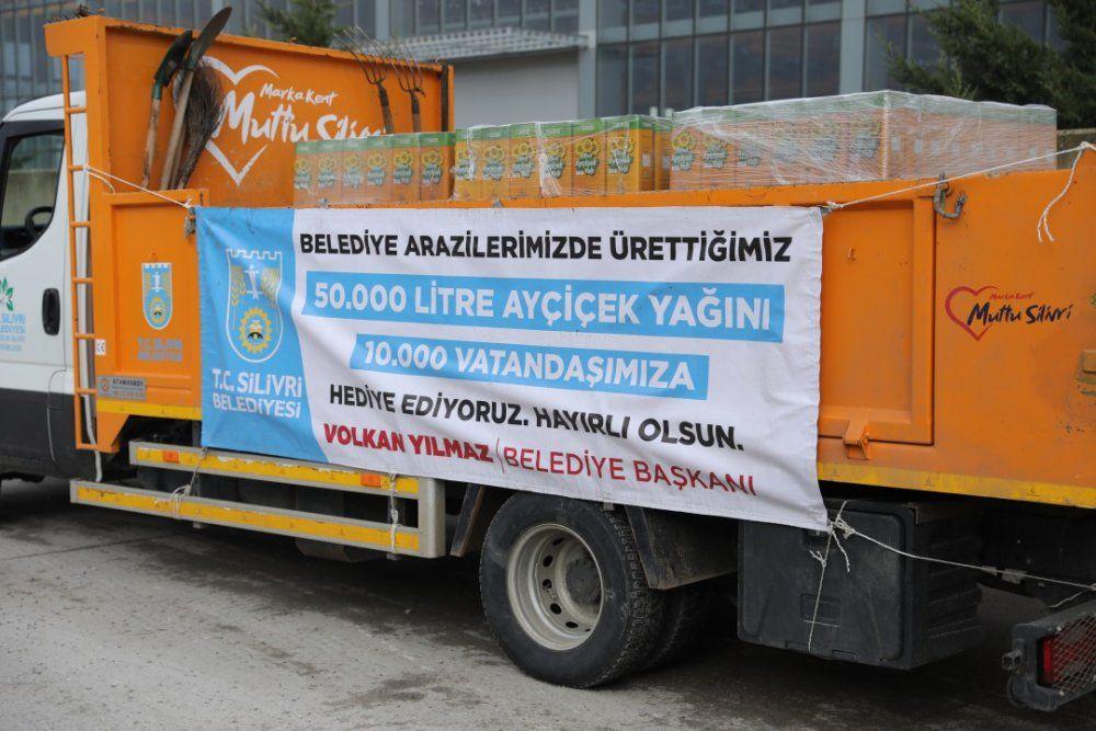 Silivri Belediyesi, Başkan Volkan Yılmaz'ın talimatıyla ekilen 500 dönüm ayçiçeğinden elde edilen 10 bin teneke Ayçiçek yağı ihtiyaç sahiplerine dağıtılacak.
