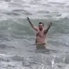 Silivri'de bir vatandaş soğuk hava ve lodosa aldırış etmeden denize girdi