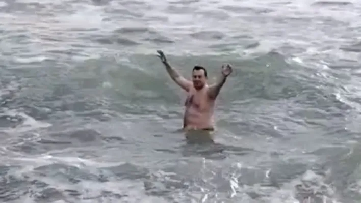 Silivri Parkköy sahilinde Emin Yurdakul isimli vatandaş, kış ortasında lodosun etkili olduğu saatlerde denize girdi. Dalgaların zaman zaman yükselmesi nedeniyle kıyıdan uzaklaşmayan Yurdakul’un o anları cep telefonu kamerasına yansıdı.
