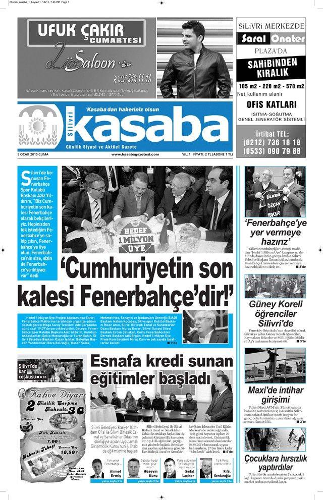 Silivri'nin yerel merkezli gazeteleri olan Hürhaber ve Kasaba Gazetelerinin 09 Ocak 2015 tarihli 1.Sayfalarında bugün