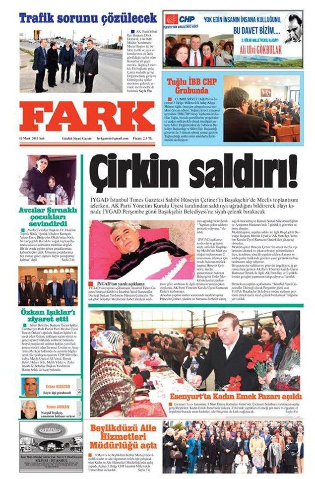 Silivri’nin yerel merkezli gazeteleri olan Hürhaber, Kasaba ve Fark Gazetelerinin 10 Mart 2015 tarihli 1.Sayfalarında bugün;