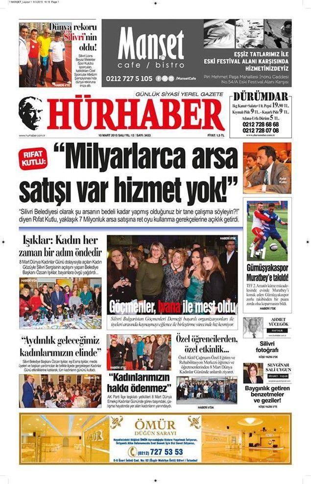 Silivri'nin yerel merkezli gazeteleri olan Hürhaber, Kasaba ve Fark Gazetelerinin 10 Mart 2015 tarihli 1.Sayfalarında bugün