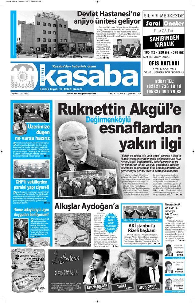 Silivri'nin yerel merkezli gazeteleri olan Hürhaber, Kasaba ve Fark Gazetelerinin 10 Şubat 2015 tarihli 1.Sayfalarında bugün