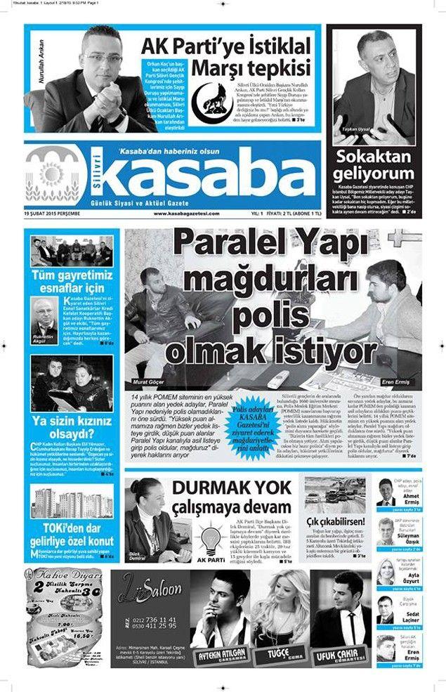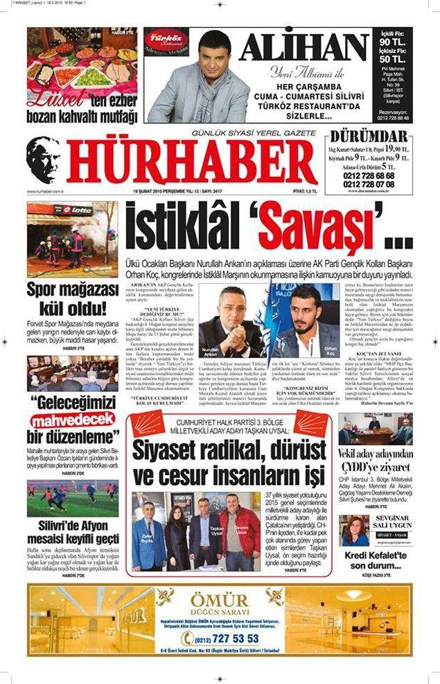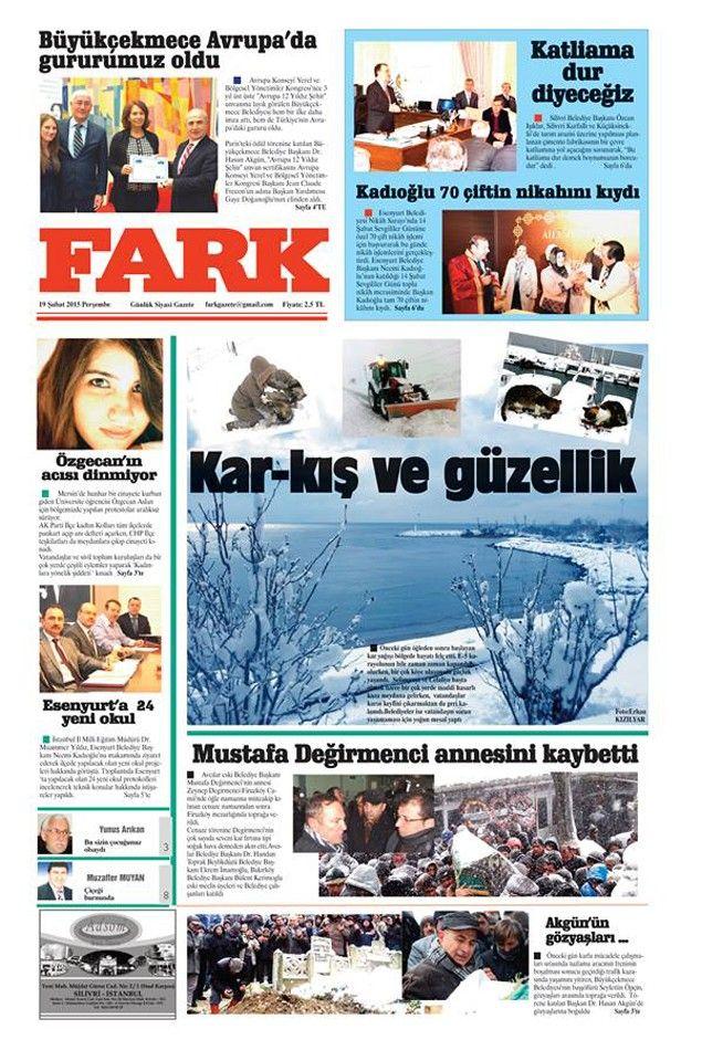 Silivri’nin yerel merkezli gazeteleri olan Hürhaber, Kasaba ve Fark Gazetelerinin 19 Şubat 2015 tarihli 1.Sayfalarında bugün;