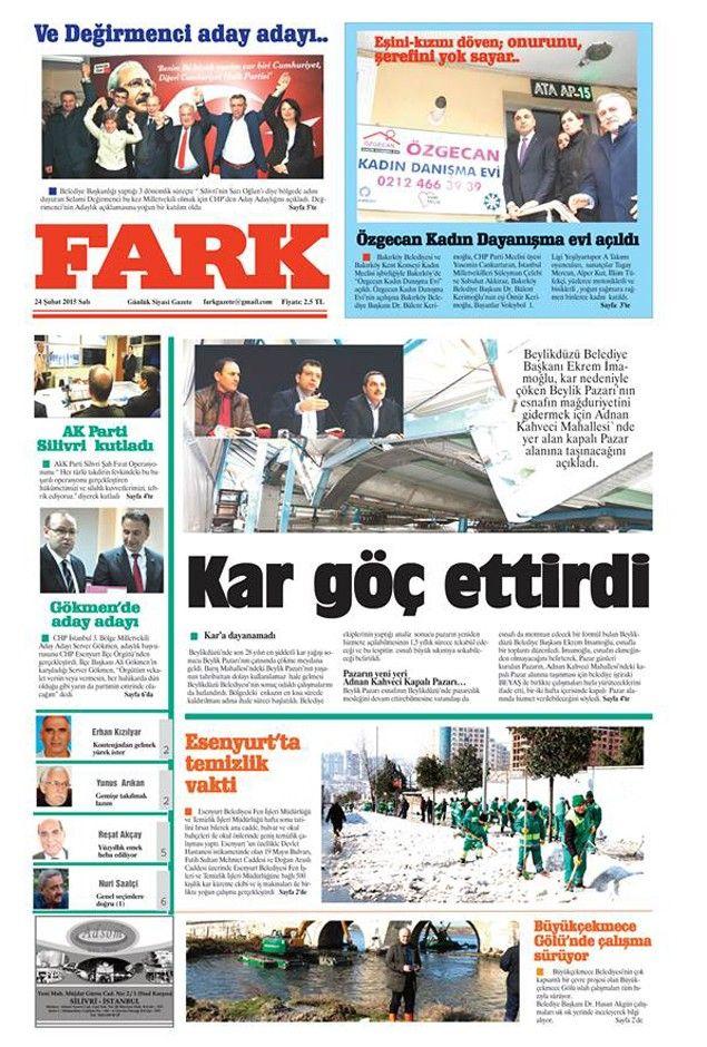 Silivri’nin yerel merkezli gazeteleri olan Hürhaber, Kasaba ve Fark Gazetelerinin 24 Şubat 2015 tarihli 1.Sayfalarında bugün;