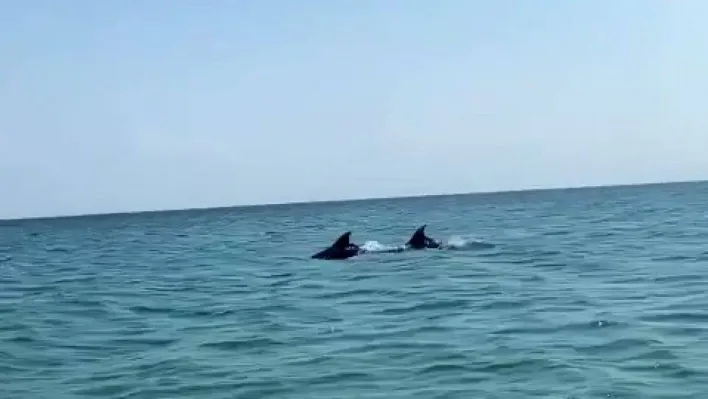 Silivri Gümüşyaka sahilinde yunus balıkları görsel şölen oluşturdu. O anları bir vatandaş cep telefonuna kaydetti.