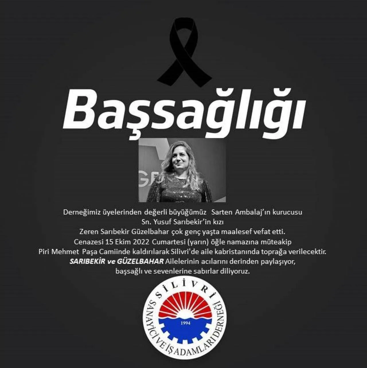 Silivri Sanayici ve İş adamları Derneği, genç yaşta hayatını kaybeden Zeren Sarıbekir Güzelbahar için taziye mesajı yayınladı.