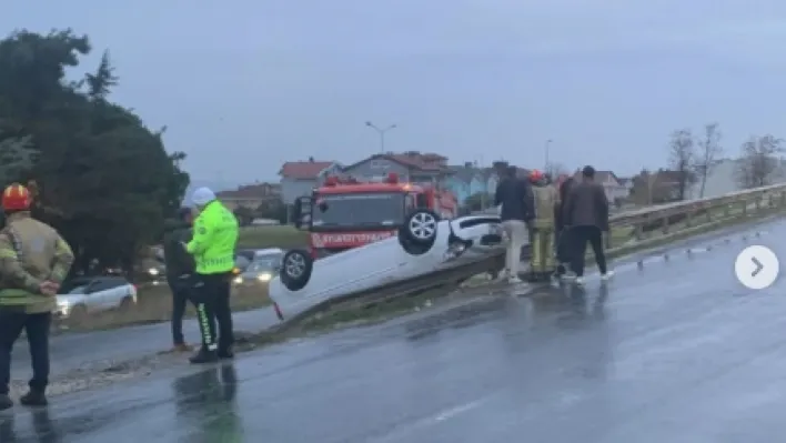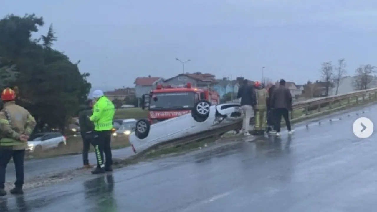 Silivri Sinekli Köprüsü'nde bir araç takla atarak ters döndü. Olay yerine ekipler sevk edilirken, köprüye bağlanan yan yol geçici olarak trafiğe kapatıldı.