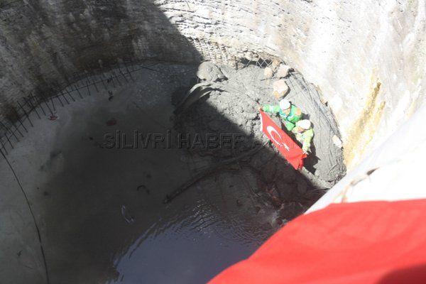 Dört sene önce Selimpaşa'da olan sel baskınını hatırlatan Topbaş, " Silivri'de Bolluca deresinin şu anda istimlaklarını yaptık. Biz orada 4 yıl uğraştırdılar. Yargıya götürdüler planları iptal ettirdiler.Olmaz dediler. Sonunda dediğimize geldiler. Bizim söylediğimiz doğru çıktı. Dört yıl önce yapsaydık o sel baskınını yemeyecekti orası.Şimdi bizim dediğimiz çıktı.Biz İstanbul'a ve insanımıza hizmet vermenin gururunu yaşamaktayız " şeklinde konuştu. Topbaş konuşmasının ardından atıksu tünelinin kaza köstebek cihazını kullanan Mustafa adlı makine operatörüyle telefonda konuştu. " Bir hediye bekliyorum " diyen operatöre cevap veren Topbaş " Tabii bahşişi olacak bu işin. Bunun farkındayız " dedi. Topbaş üç senedir yeraltında çalıştığını kaydeden makine operatörüne teşekkür etti. Ardından da yüzeyin 11 metre, deniz seviyesinden 6.5 metre altında olan köstebek adlı cihazı kullanan makine operatörü Türk bayrağı açarak belirlenen bölümden çıktı. Türk bayrağı açan makine operatörü kameralara poz verrmeyi de ihmal etmedi.