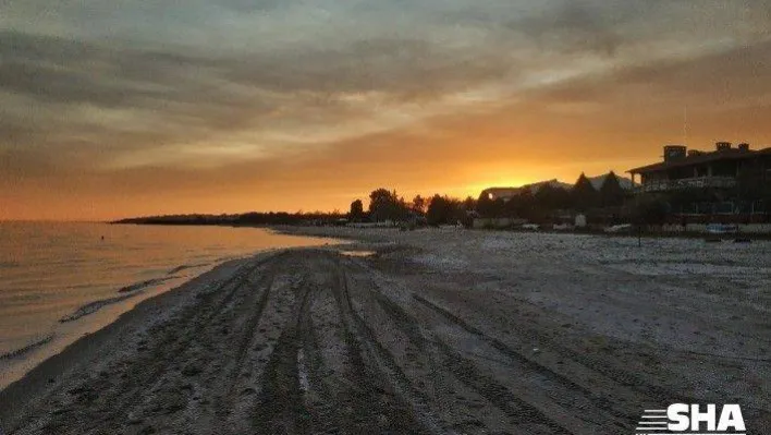 İstanbul Silivri’de gün batımı ile kızıla bürünen gökyüzü kartpostallık görüntüler oluşturdu.Korona virüs tedbirleri kapsamında İstanbul Silivri’de sahiller boş kaldı. Korona virüsüne karşı alınan önlemlerin etkisinin gözüktüğü Semizkum Sahili ıssız kalırken gün batımı ile kızıla bürünen gökyüzü görsel bir şölen oluşturdu.