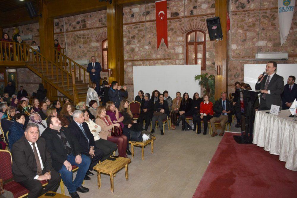 Silivri Belediyesi Yaşar Kemal Sergi Salonu’nda “Kooperatifçilik” konulu seminer düzenlendi. Silivri Belediyesi ve Silivri Kent Konseyi ortaklığında düzenlenen bilgilendirme seminerine, Namık Kemal Üniversitesi Ziraat Fakültesi Kadın Sorunları ve Uygulama Merkezi Müdürü Prof. Dr. Gülen Özdemir konuşmacı olarak katıldı. Programa; Silivri Belediye Başkanı Özcan Işıklar, CHP Silivri İlçe Başkanı Suna Göçengil, İYİ Parti Silivri İlçe Başkanı Ozan Ersaraç, Kent Konseyi Kadın Meclisi Başkanı Esin Yalçıntaş, Silivri Muhtarlar Derneği Başkanı Ömer Ercan, Silivri Birleşik Esnaf ve Sanatkârlar Odası Başkanı Nuray Koçer, Silivri Kadın Girişimciler Derneği Üyeleri, Belediye Meclis Üyeleri ve kadın üreticiler yoğun katılım gösterdi.