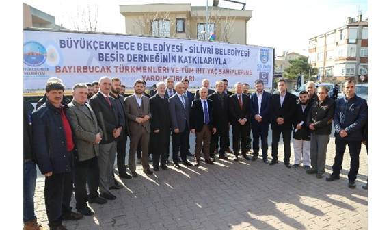 Büyükçekmece Belediyesi, Beşir Derneği ve Silivri Belediyesi tarafından düzenlenen organizasyonla Bayır Bucak Türkmenleri'ne insani yardım malzemesi gönderildi.