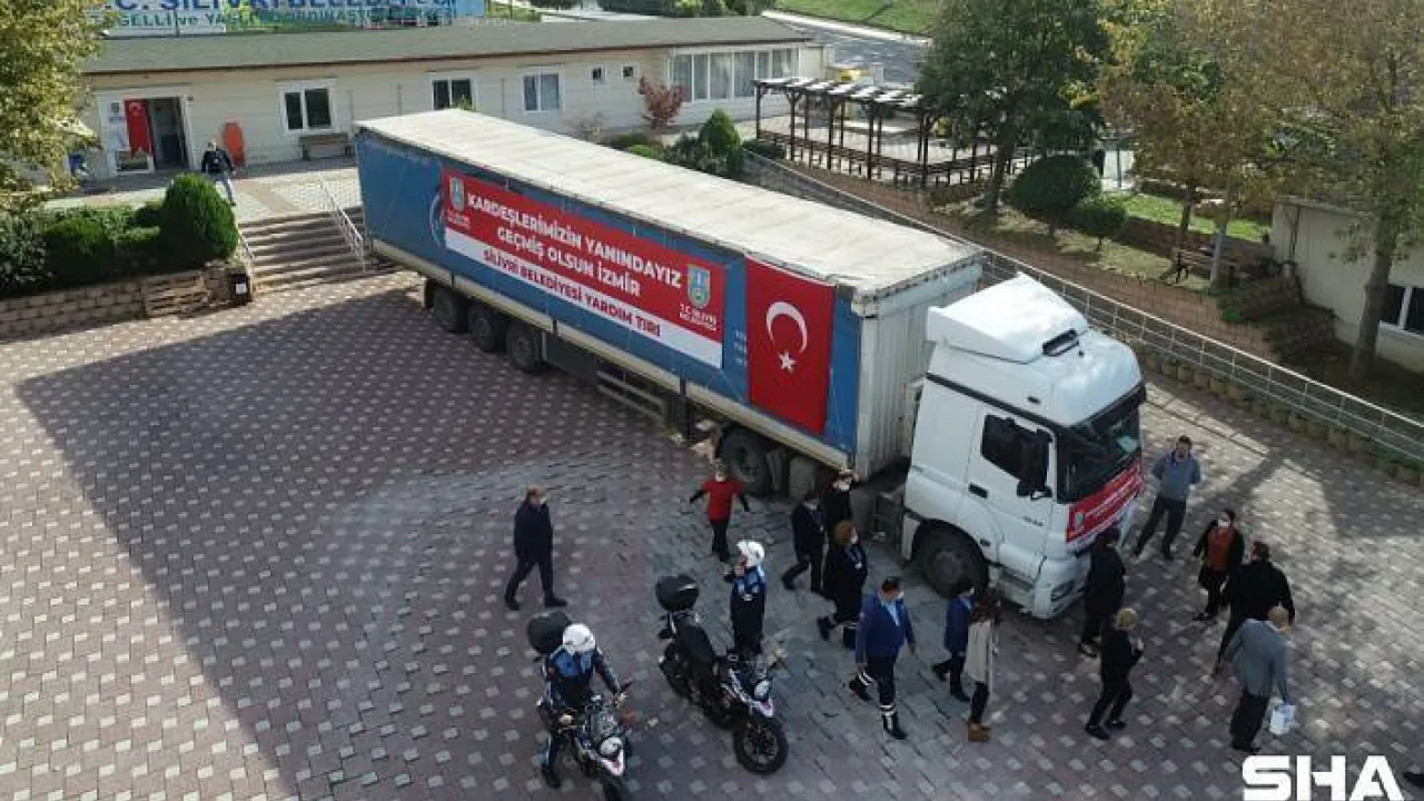 Silivri Belediyesi tarafından İzmir'de meydana gelen deprem nedeniyle bölgede yaşayan depremzedelere ulaştırılmak üzere hazırlanan ikinci yardım TIR'ı yola çıktı.