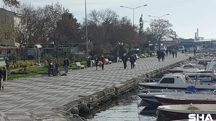Silivri sahilinde sokağa çıkma kısıtlamasına rağmen bazı vatandaşlar banklarda otururken, bazılarının da yürüyüş yaptıkları görüldü. Vatandaşların oluşturduğu kalabalık kameraya yansıdı.