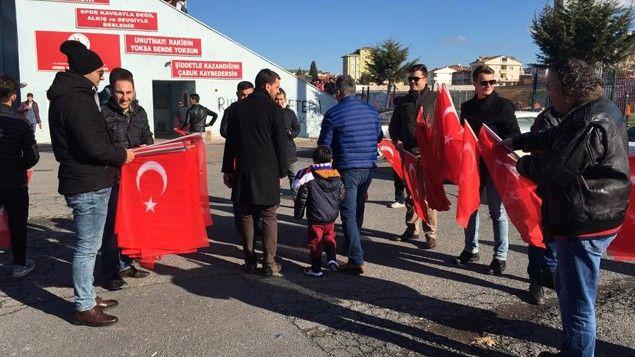 Stat girişinde Türk Bayrağı dağıtıldı
