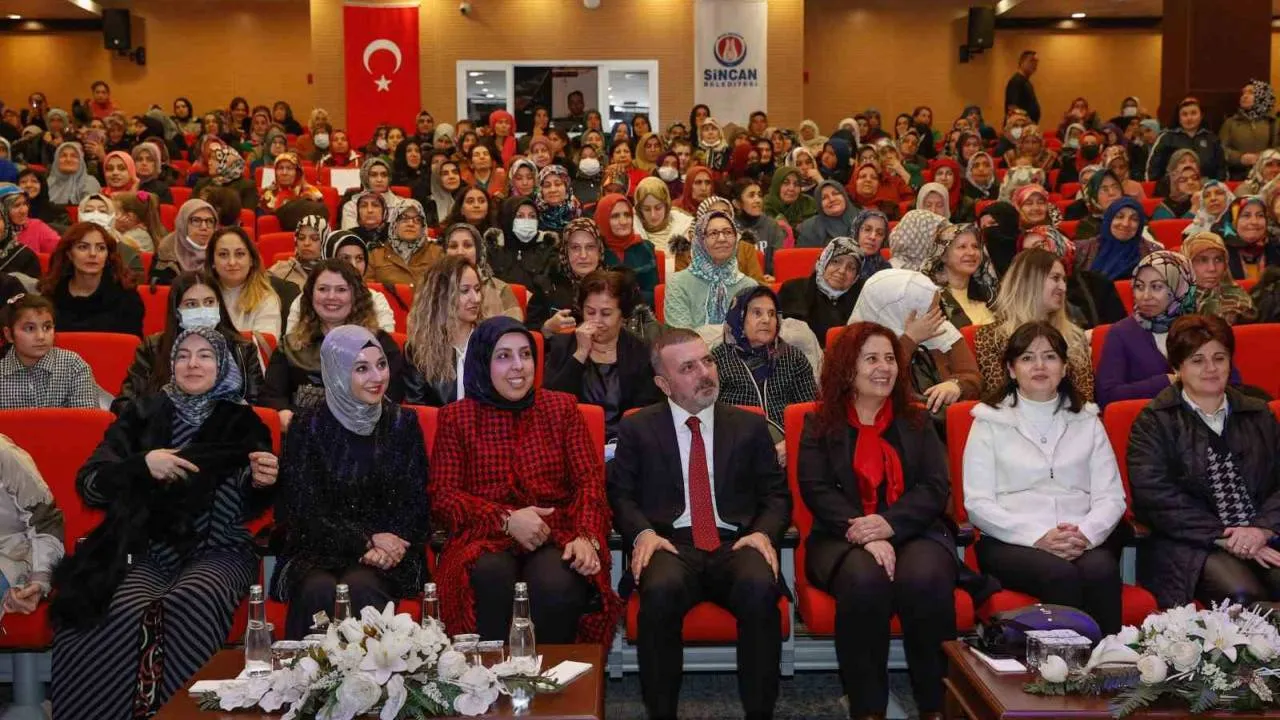 Programın açılış konuşmasını yapan Sincan Belediye Başkanı Murat Ercan, “Bu şehrin mayası siz hanımlarsınız, sevinci, mutluluğu sizlersiniz. İyi ki varsınız. Hep dediğim gibi kadınları mutlu edersek, aile de mutlu olur, toplum da mutlu olur, şehir de mutlu olur’’ diye konuştu.