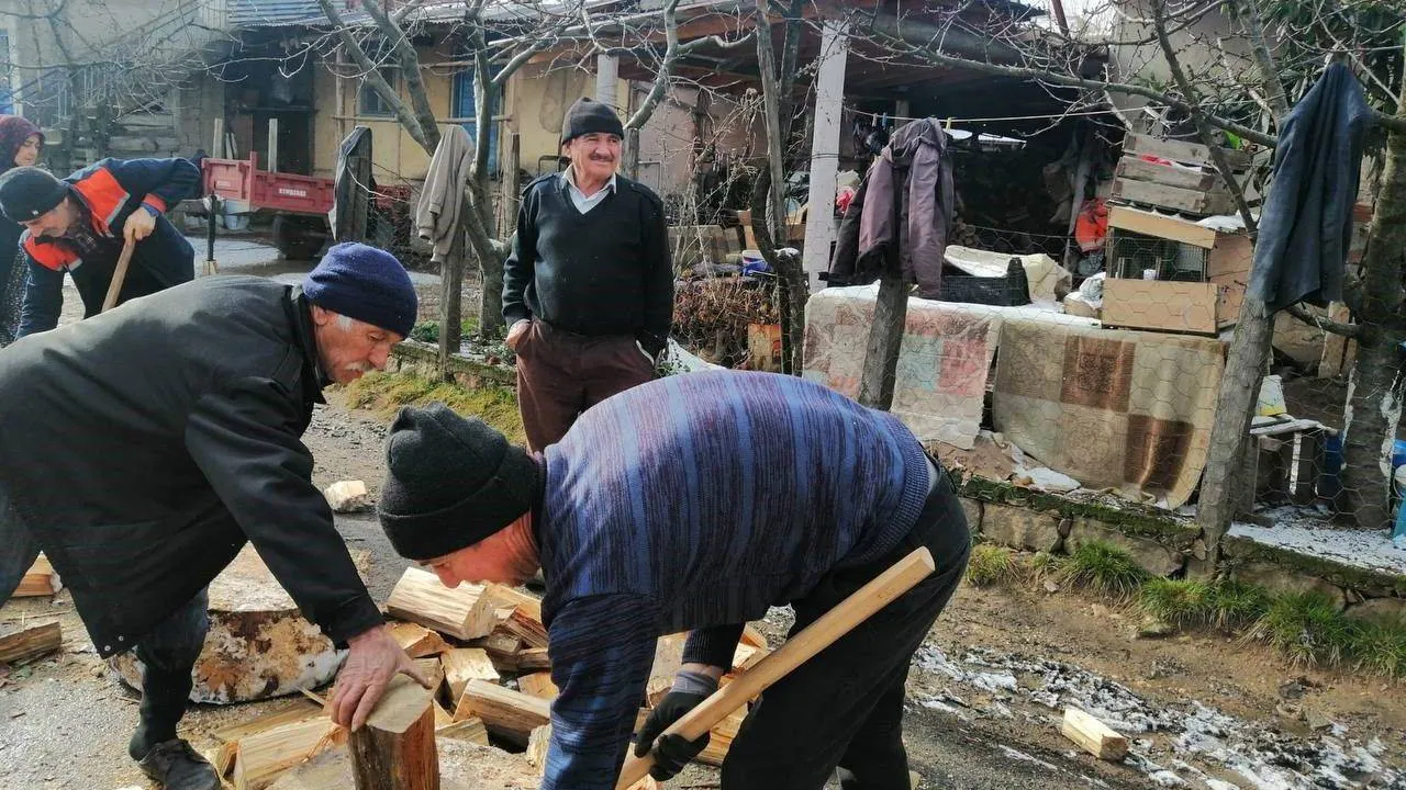 Balıkesir’in Sındırgı ilçesi İzzetin kırsal mahallesinde yaşayan vatandaşlar dağlardan topladıkları odunları köy meydanında el birliği ile keserek depremzedeler için bir TIR dolusu odun hazırladı.