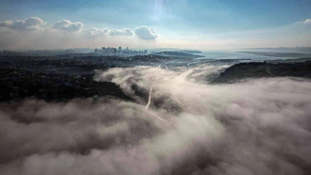 Sabah saatlerinden itibaren etkili olan sis İstanbul’un birçok noktasında görüldü. Sazlıdere gölü üzerinden gelen sis bulutu Küçükçekmece gölüne doğru gökyüzünü kapladı. Sis bazı tepelerde binaların adeta bulutların üzerinde durduğu izlenimi uyandırdı. Gökyüzü ile birleşen sis bulutu kartpostallık görüntüler oluşturdu.
