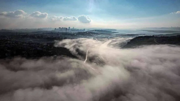 İstanbul'da sabah saatlerinde sis etkili oldu. Sazlıdere gölü üzerinden gelen sis bulutu Küçükçekmece gölüne doğru gökyüzünü kapladı. Kartpostallık görüntüler oluşturan sis bulutu dronla görüntülendi.