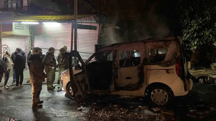 Bekçi kulübesi alev alev yanarken alevler park halindeki 34 MD 7677 plakalı hafif ticari araca sıçradı. İtfaiye ekipleri yangına kısa sürede müdahale etti.
