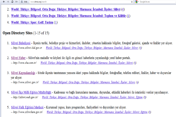 Aşağıdaki linkte Silivri’de yayın yapan ve dmoz.org’a kaydı olan kurum ve kuruluşları görebilirsiniz.