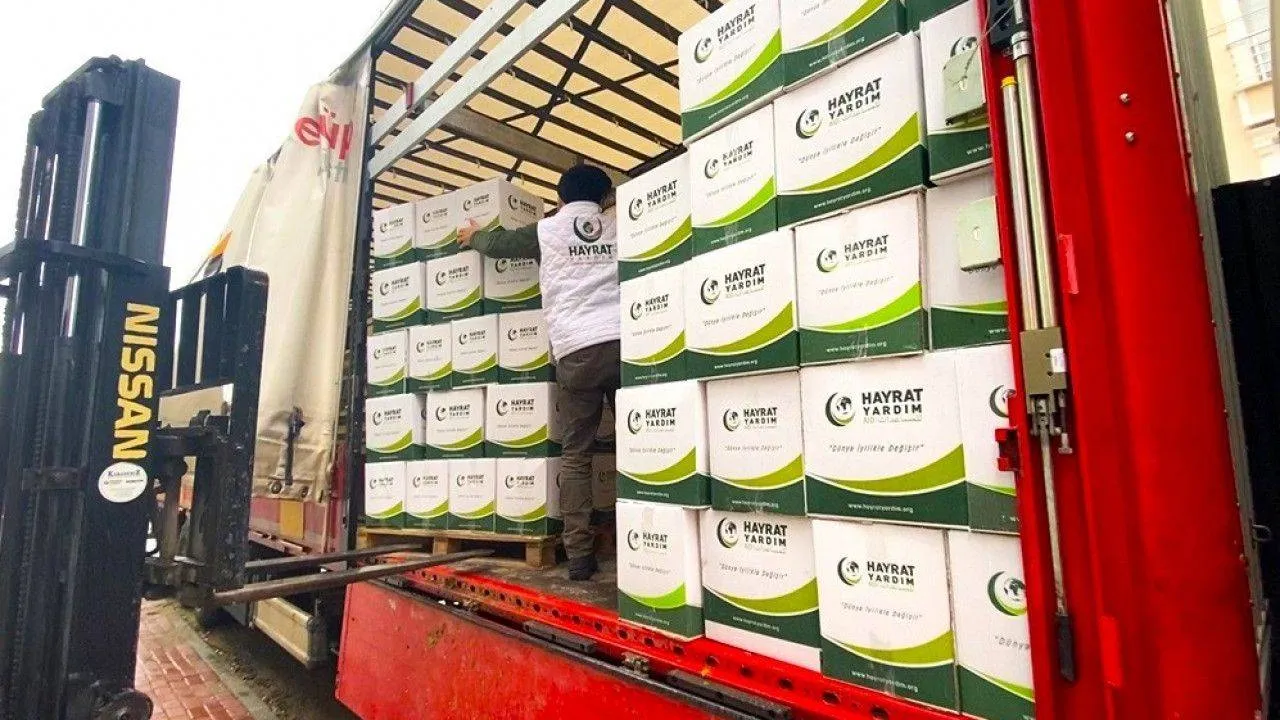 Hayrat İnsani Yardım Derneği Kocaeli Temsilciliği tarafından düzenli olarak Suriye’nin İdlib şehrine yardım gönderiliyor. Gönüllü bağışçılar tarafından toplanan gıda, giyim, kömür ve battaniye gibi yardımlar, dernek üyeleri tarafından kolilere özenle yerleştiriliyor. Tırlara yerleştirilen koliler, İdlib’de çadır kentlerde yaşam mücadelesi veren insanlara umut oluyor. Bu ay da Kocaeli’den İdlib’e soğuk kış günlerinde tam 13 tır yardım malzemesi yola çıktı. Tırlarda bulunan yardım kolilerinin içerisinde özellikle çocuklar için kışlık kıyafetler, kömür, battaniye ve gıda malzemeleri yer alıyor.