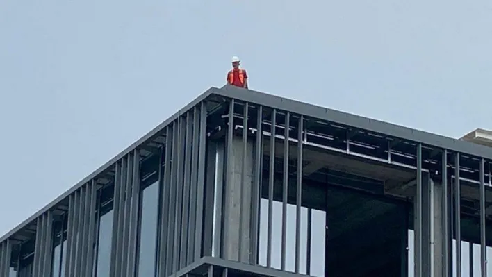 Tekirdağ Çerkezköy Organize Sanayi Bölgesi'ndeki bir fabrikanın yapım işinin üstlenen taşeron firmanın alt yüklenicisi, bu ayki hak edişini alamayınca soluğu çatıda aldı.