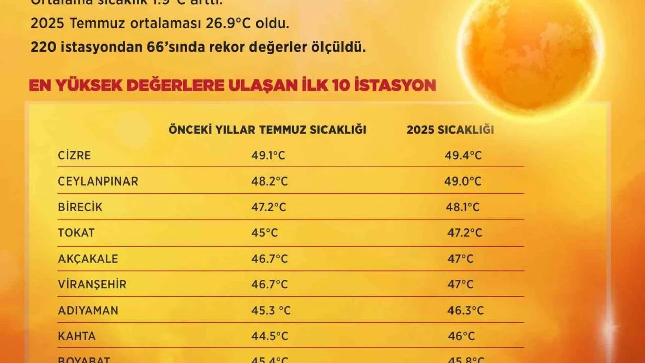 Çevre, Şehircilik ve İklim Değişikliği Bakanlığı'na bağlı Meteoroloji Genel Müdürlüğü'nün hazırladığı rapora göre, 2025 yılı Temmuz ayı son 55 yılın en sıcak temmuz ayı olarak kayıtlara geçti.