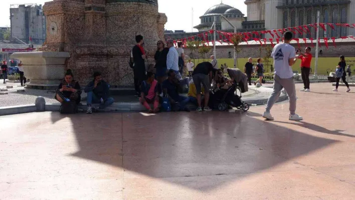 Meteorolojinin yaptığı uyarıların ardından İstanbul’da hafta sonu sıcak hava etkili olmaya başladı. Taksim’de sıcaktan bunalan kimi vatandaşlar gölgelik yerleri tercih ederken bazıları ise şemsiye gibi yöntemleri denedi.