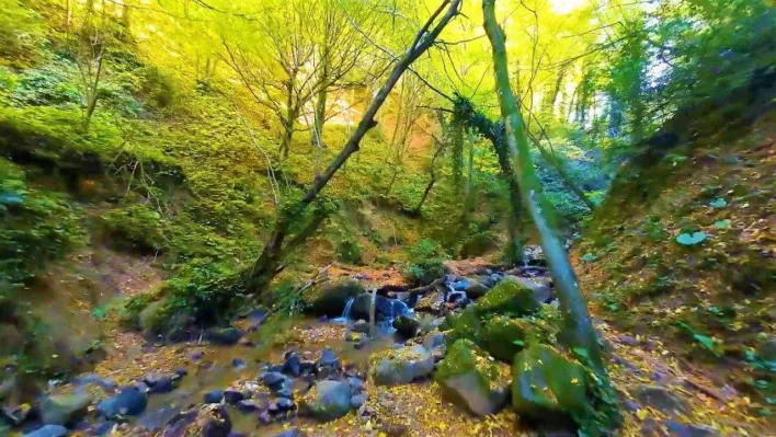 Kocaeli'nin eşsiz güzellikleri arasında yer alan Nüzhetiye Şelalesi ile Sonbaharın renklerinin birleştiği görüntüler, izleyenleri mest ediyor.