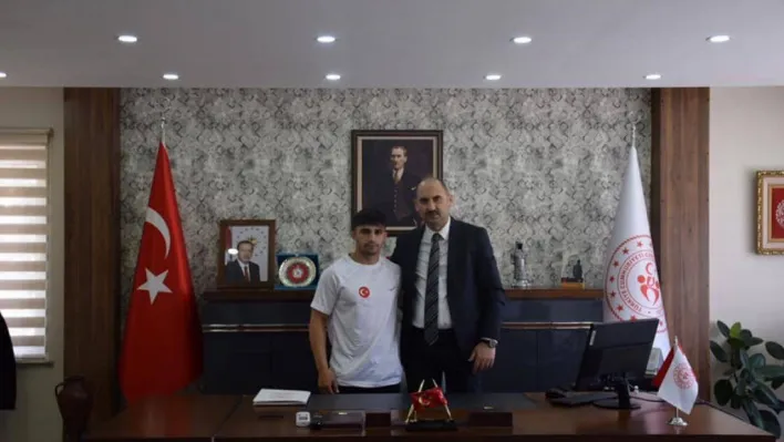 Bilecik Gençlik ve Spor İl Müdürü Yasin Özdemir, sporcu Mehmet Nuri Taşkıran'a turnuva öncesi destek oldu.