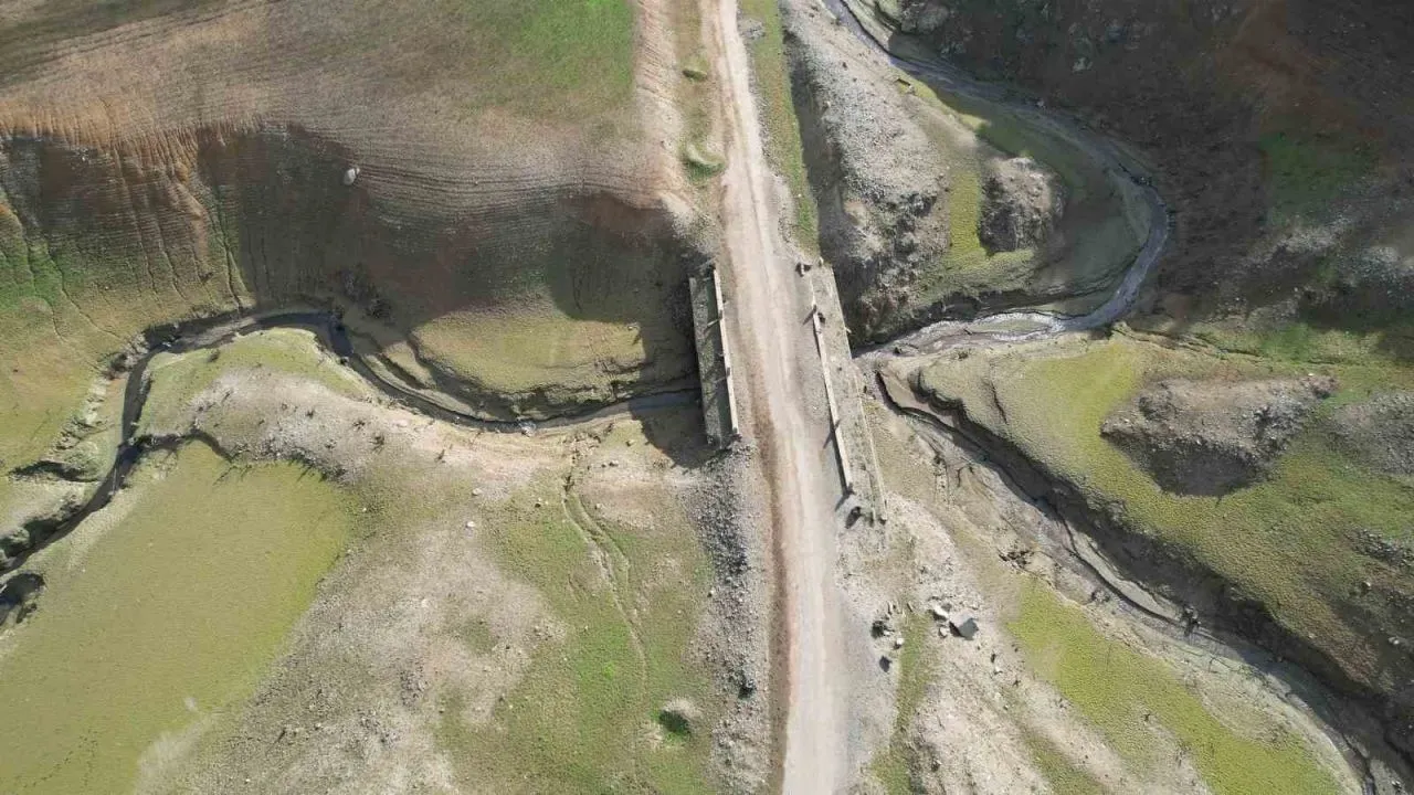 Su seviyesi düşen Gökçe Barajı'nda tarihi yolun kalıntıları gün yüzüne çıktı