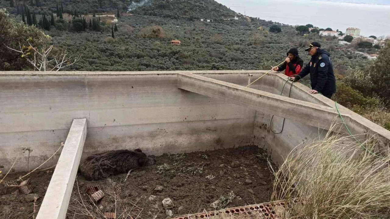 Bursa’da sulama havuzuna düşen domuz, ekipler tarafından kurtarıldı.