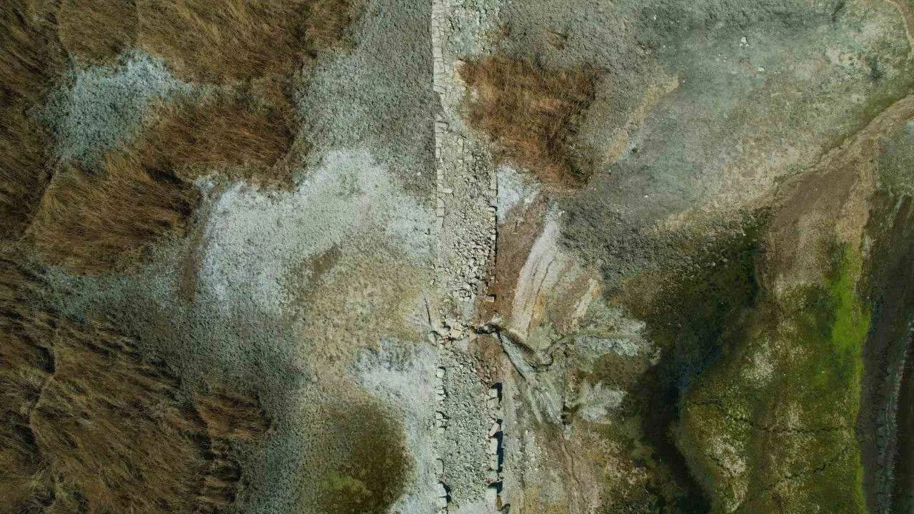 Suların çekildiği Terkos Gölü'nde ortaya çıkan tarihi yol havadan görüntülendi