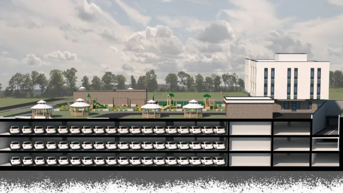 Sultangazi Belediyesi, 50. Yıl Mahallesi'ne 350 araç kapasiteli 3 katlı otoparkıyla hizmet verecek olan çok fonksiyonlu bir hizmet kompleksi kazandırıyor. Hizmet tesisi, sadece otoparkı değil yeşil alanları, parkı, aile sağlığı merkezi ve kütüphanesi ile de bölge halkına hizmet verecek.