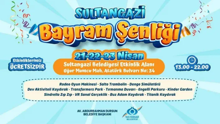 Belediye Başkanı Av. Abdurrahman Dursun, “Bu yıl hem Ramazan Bayramı’nın sevincini, hem de 23 Nisan Ulusal Egemenlik ve Çocuk Bayramı’nın coşkusunu yaşıyoruz. Çocuklarımız çifte bayram yaşasın diye bizler de harekete geçtik. Onların güldüğü, doyasıya eğlendikleri bir bayram olması adına etkinlik alanımızı adeta bir oyun alanına çevirdik. Sanal gerçeklik oyun alanlarından kaydıraklara, engelli parkurlarından oyun makinelerine çocuklarımızın keyifli bir bayram geçirmesi için her detayı düşündük. Şimdiden tüm hemşerilerimin Ramazan Bayramı’nı tebrik ediyorum. Çocuklarımızın da 23 Nisan bayramını kutluyor, gözlerinden öpüyorum” diye konuştu.